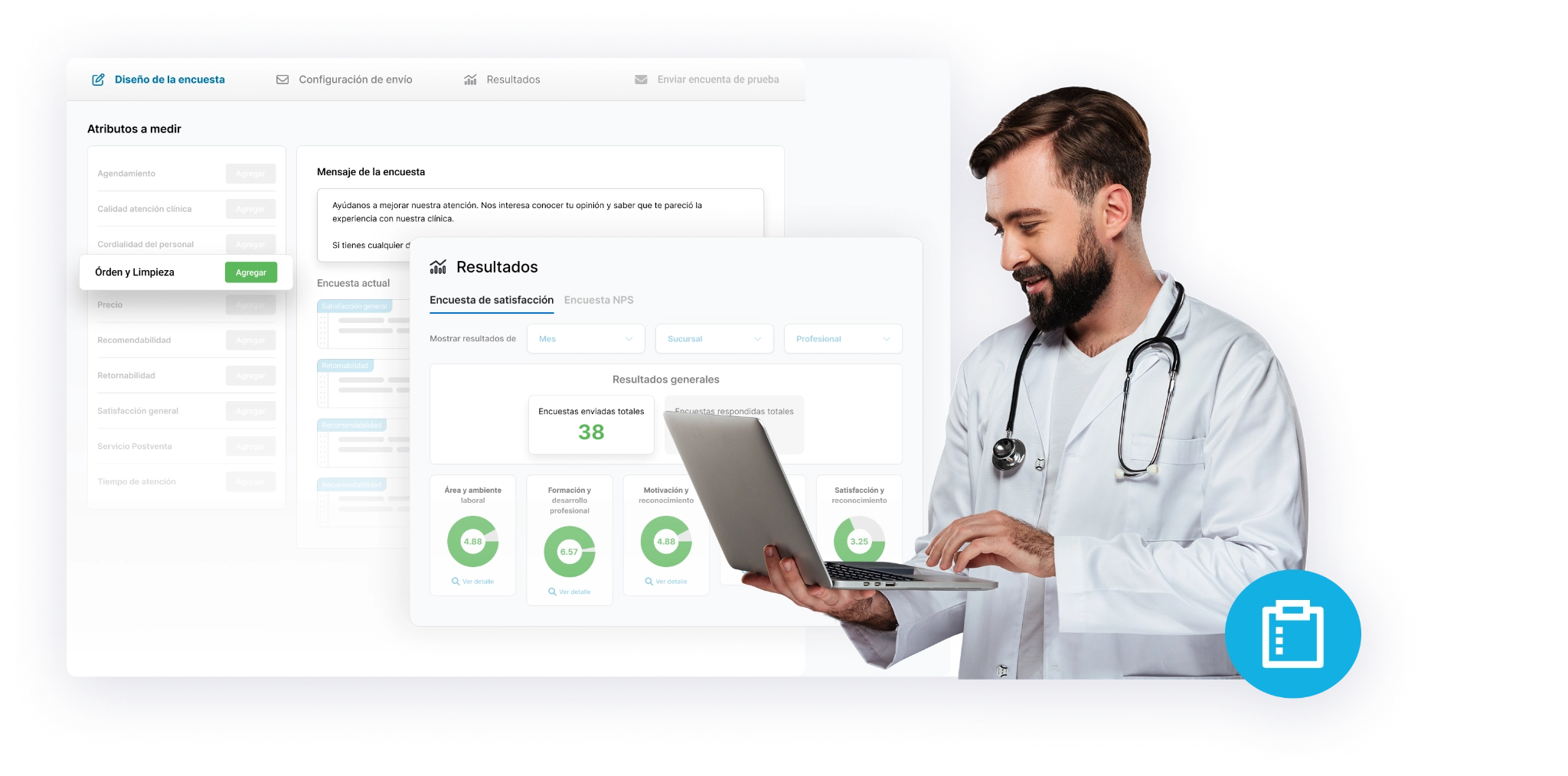 Descubre la opinión de tus pacientes utilizando encuestas de satisfacción personalizadas. Acompáñalas con mensajes que refuercen la importancia de conocer sus comentarios, y así mejorar continuamente la calidad de tu atención.