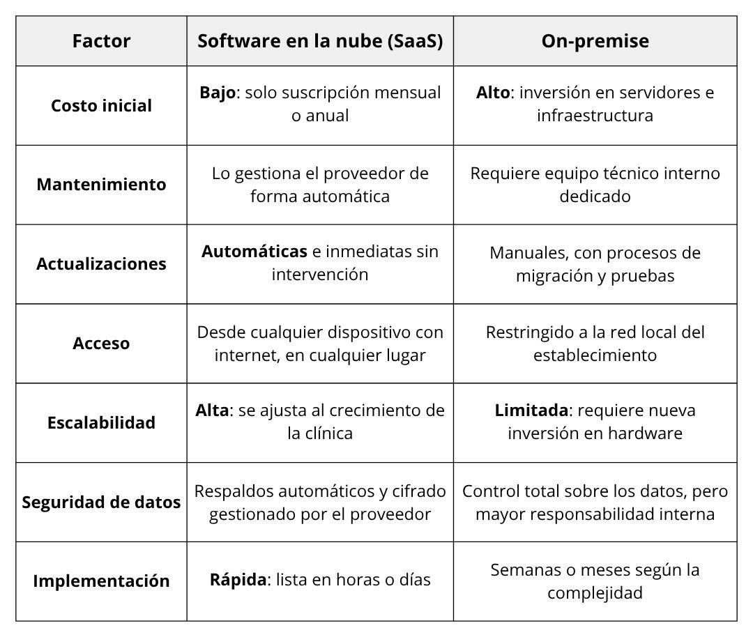 La elección entre un software en la nube para hospitales y uno instalado (on premise) impacta directamente en tu inversión inicial, tu capacidad de escalar y tu esquema de seguridad.