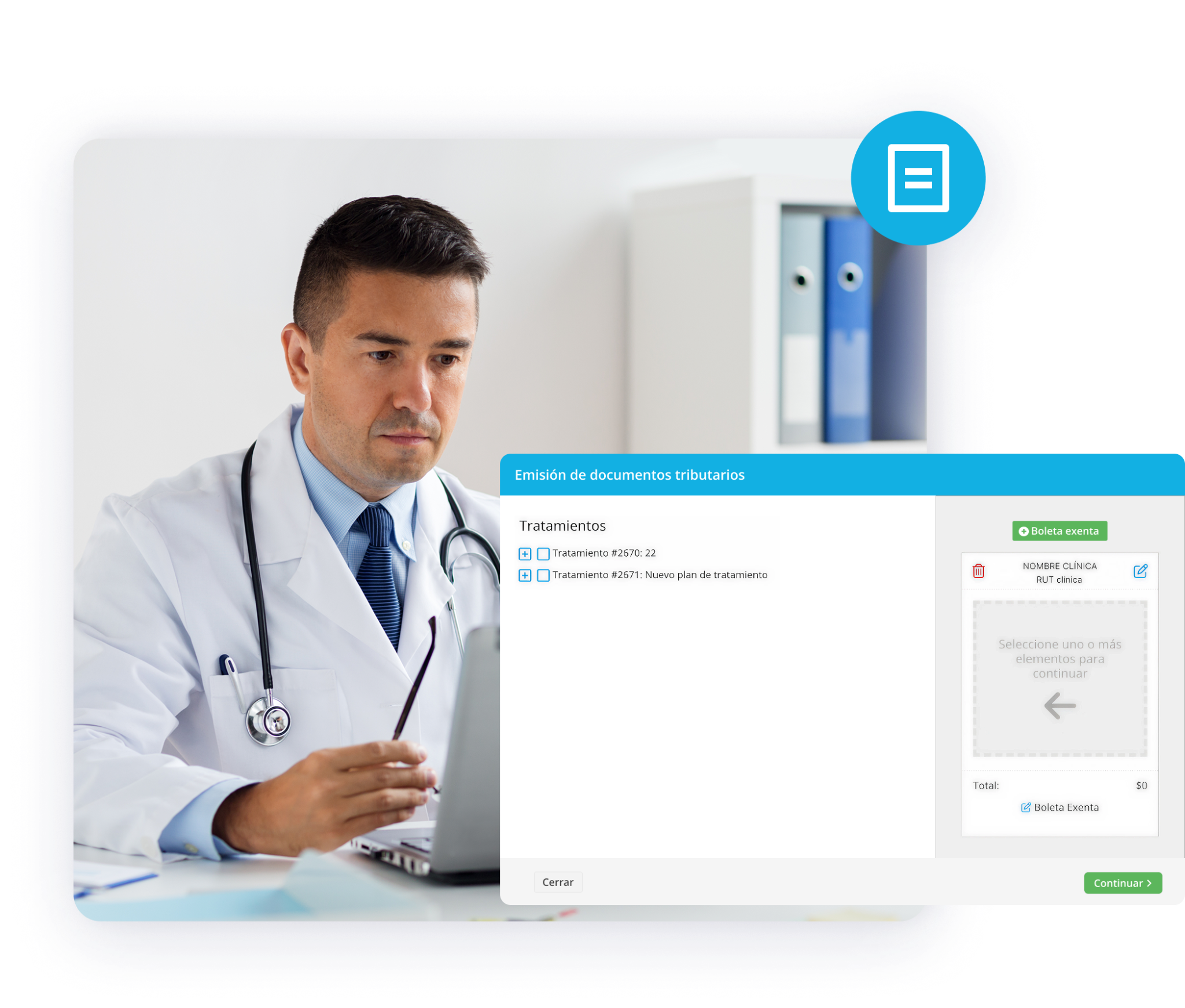 Conecta Medilink con tu proveedor de facturación electrónica para emitir facturas al instante desde Medilink, vinculadas al historial clínico y al pago de cada paciente, con respaldo automático al SII.
