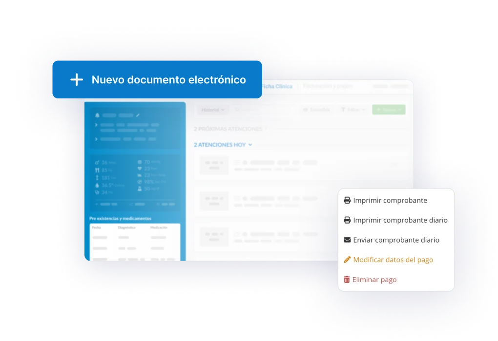Integra automáticamente los datos de facturación al flujo de recepción de pagos. La información clínica, administrativa y financiera se sincroniza dentro de Medilink, evitando reprocesos y asegurando que cada factura cumpla con los requisitos legales sin salir del sistema.